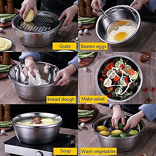 3 in 1 Kitchen Multipurpose Kitchen Stainless Steel Bowl, Drain Basket, Julienne Graters for Vegetable/Fruit Grater, Cutter, Mesh Strainers
