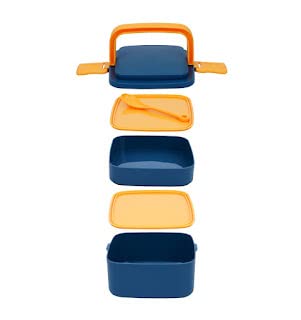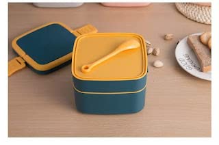Blue Double-Layer Portable Lunch Box Stackable with Carrying Handle and Spoon Lunch Box