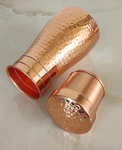 Copper Water Bedroom Bottle, Bedside Carafe, Bedroom Jar with Inbuilt Copper Glass/Vessel 1200 Ml