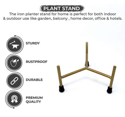• Rust-free Metallic Decorative Plant Pot (6 x 6 Inches) / suitable for Kitchen, Office, Balcony & Room. • It's durable & efficient for making your environment fresh & healthy with pure oxygen providing plant in it. • Unbreakable Product, easy to clean. • Plant Not Included. • No need of Installation. • Net Quantity : 1.00 count. • Included Components : 1 metal pot with stand • Generic Name : Metal. • Spacial Feature: Drainage Hole, Lightweight, Weather Resistant, Rust Resistant. • IMPORTANT FACTS: Color may vary slightly due to photography lights or display variance on different screens This is handmade product and actual product may vary slightly from product displayed. This is planter only & plant shown in image is for representation purpose only. These are not included in the package, Kindly refer to size image before making a purchase. • Shape: Round.