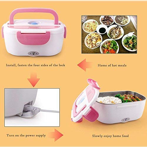 - Portable electric lunch box that warms up stored food Suitable for those want to take away lunch and breakfast Automatically powers off after food is warmed Made from high-temperature resistant materials & high-insulation materials. Tight lid prevents leakage