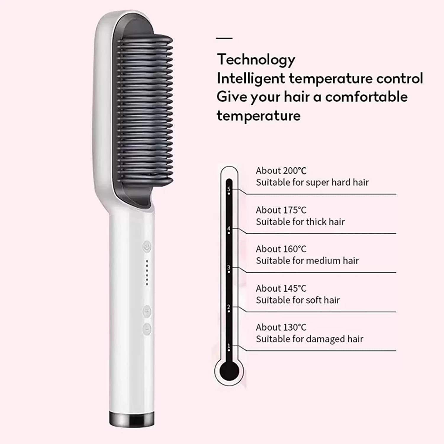 HAIR STRAIGHTENER BRUSH : [Ultra-fast heating time and larger heating area] 20 seconds fast heating The built-in iron hair straightener adopts the upgraded ceramic heating (PTC) technology, which can be heated quickly, covering more hair and heating evenly at a time. It is easy to straighten the ends of the hair and get very close to the roots. It is an ideal gift for girlfriend, wife, daughter or friends on birthday, Christmas, Valentine's Day and New Year. HAIR STYLER : [Two-in-one hair straightener for women's styling] You can use this excellent two-in-one hot brush straightener to straighten or curl your hair. It won't pull your hair, just a light stroke, you can straighten it smoothly. Compared with flat iron, deep combing can comb more layers of hair at a time, instead of just combing the surface. HAIR STRAIGHTENING MACHINE : [Anti-scalding design and 30 minutes automatic closing] This anti-scalding straight hair brush will protect your scalp from high temperatures, and the flame-retardant plastic frame protects you from all angles. The straightener will automatically turn off after 30 minutes to ensure the safety of you and your family. HAIR STRAIGHTENER COMB : [International Standard Voltage] Our hair straightener is suitable for international voltages from 110V to 240V, which is convenient for travel. With a conversion plug, you can use it no matter which country you are in. Bring a travel bag, you can easily pack it and take it for travel. Fashion, your best gift for your friends: Professional, stylish, your best gift for your friends in X-mas, Thanksgiving Days, New Year and other festivals. HAIR BRUSH Different 5 Temperature Settings Suitable For All Types of Beard and Hair.Write Your Review