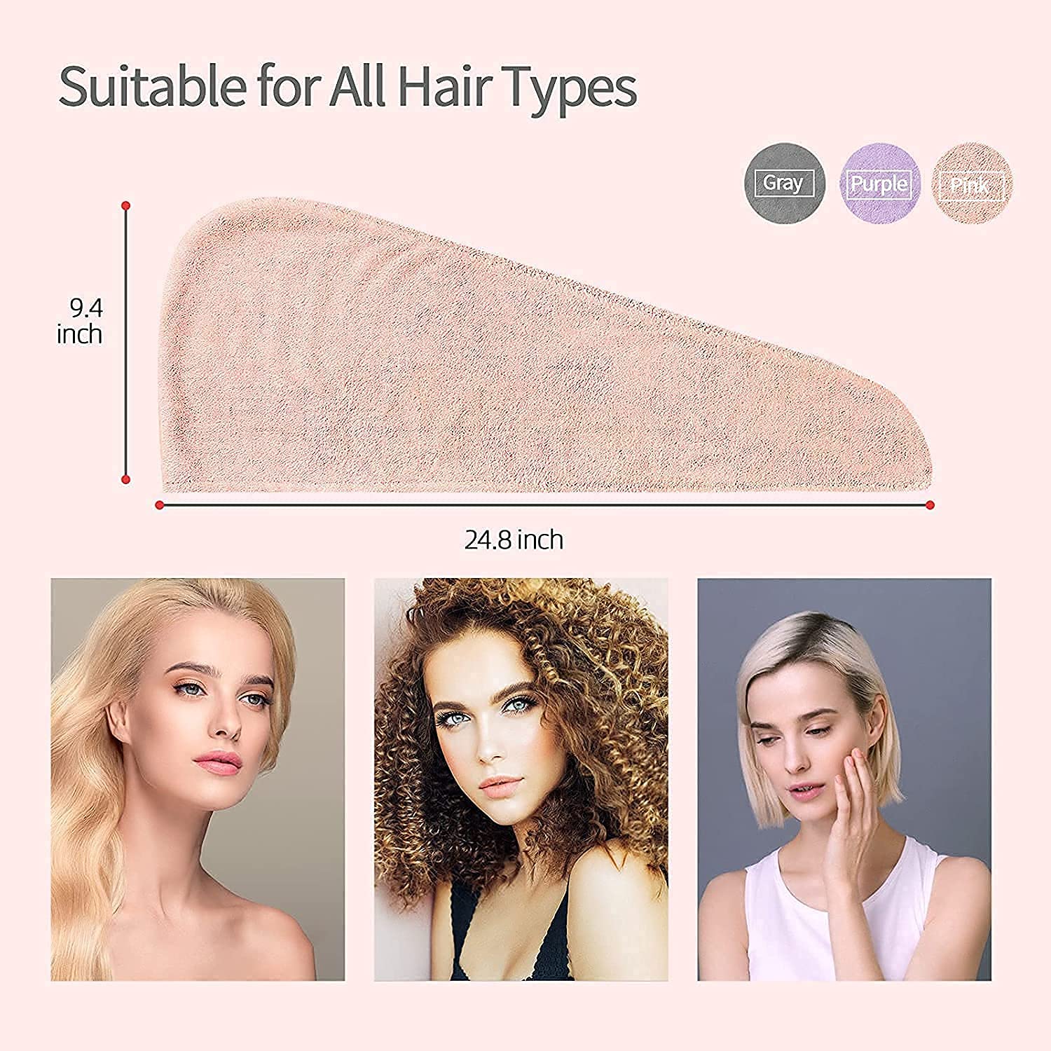 This Microfiber Hair Towel is made of super soft microfiber fabric. Its high water absorbency can dry your wet hair effectively and naturally .