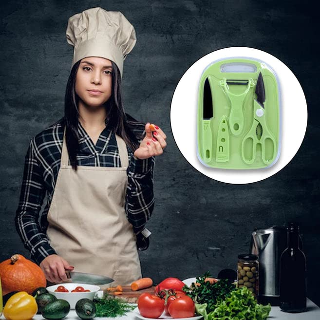 Knife with Chopping Board with Peeler, Grater | Vegetable Cutting Kitchen Accessories Items (5 pcs Set)