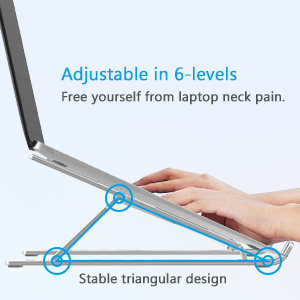 PC SQUARE Height Adjusting Laptop Stand Or Laptop Ergonomic Stand Or Laptop Stands For Office Desk Improves Your Posture Scientifically Designed To Help You Balance You’re Sitting Posture Keeping Your Back Straight, Neck Relaxed And Wrists Natural Even After Long Work Hours Multi-Angle Adjustable Design: The Aluminium Laptop Stand Or Metal Laptop Stand Or Foldable Laptop Stand Or Better Known As A Aluminum Laptop Stand Provides 6-Speed Adjustable Height, Adjust To Comfortable Operating Angle And Height Based On Your Actual Need. And The Ergonomic Design Makes For Easy Watching And Typing, Relieving Neck, Shoulder And Spinal Pain. Compatibility: The Laptop & Tablet Stand Supports Most Devices From 10 - 15.6 Inches: Macbook, Thinkpad, Surface, Chromebook, Ipad Pro, Etc. Therefore Known As A 11.6 Inch Laptop Stand ,12 Inch Laptop Stand , 13.3 Inch Laptop Stand ,15 Inch Laptop Stans & 15.6 Inch Laptop Stand PC SQUARE Travel Laptop Stand Or Laptop Stand Metal Is A Laptop Foldable Stand Which You Can Fold And Carry Easly In Your Backpack Or Briefcase You Can Use It To Change Angle Of Your Laptop Therefore Use It As Laptop Incline Stand Or Laptop Height Stand Laptop stand fully foldable, light weight at 260gm only and extremely handy to carry in your office bag [Increases laptop life]-keeps your laptop cooler so the battery life and internal components life also improves EXQUISITE WORKMANSHIP: Machined from anodized aluminum alloy, with sand blasted and brushed processes. With Non-slip silicone mat, avoid from risking of any scratches to your devices and stable placement makes it the best laptop stand available in the market