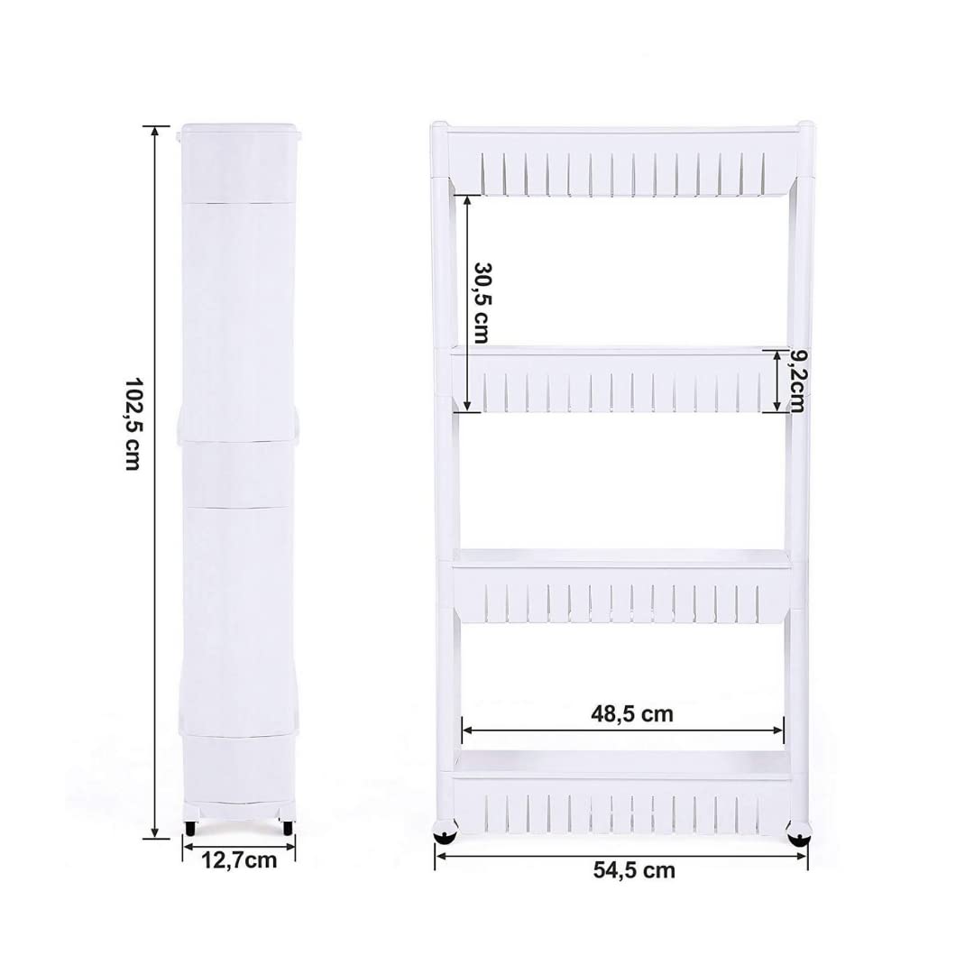 Space Saving Storage Organizer Rack - 4 Tier Slim Multipurpose Storage Rack with Wheels (Multicolor)