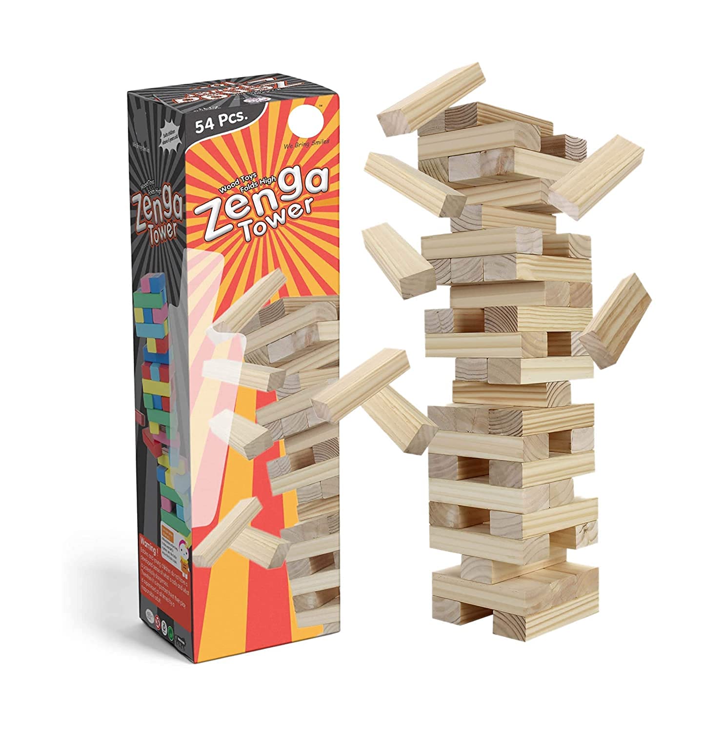 Timber Tower Tumbling Game for Kids and Adults, Wood Block Stacking Game with 54 Pieces, Classic Jenga Stacking Game for Every People, Jenga Block Game for Increasing Learning Abilities