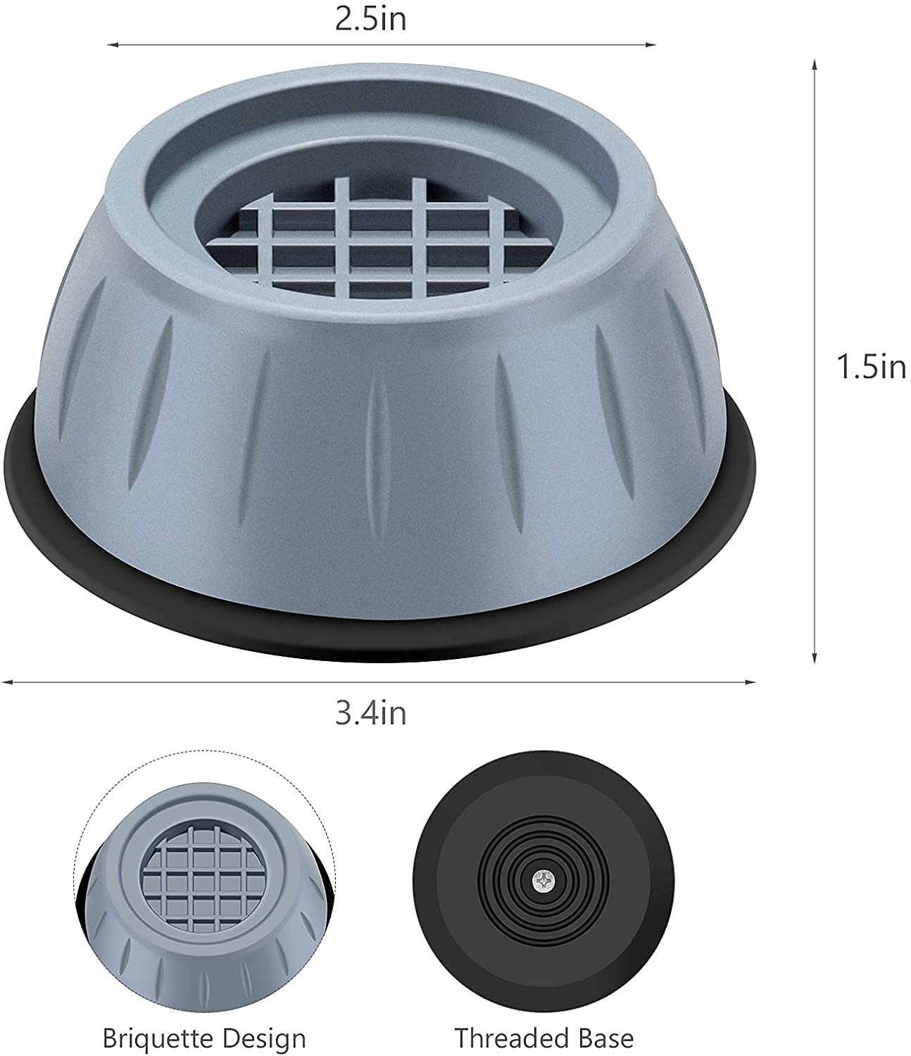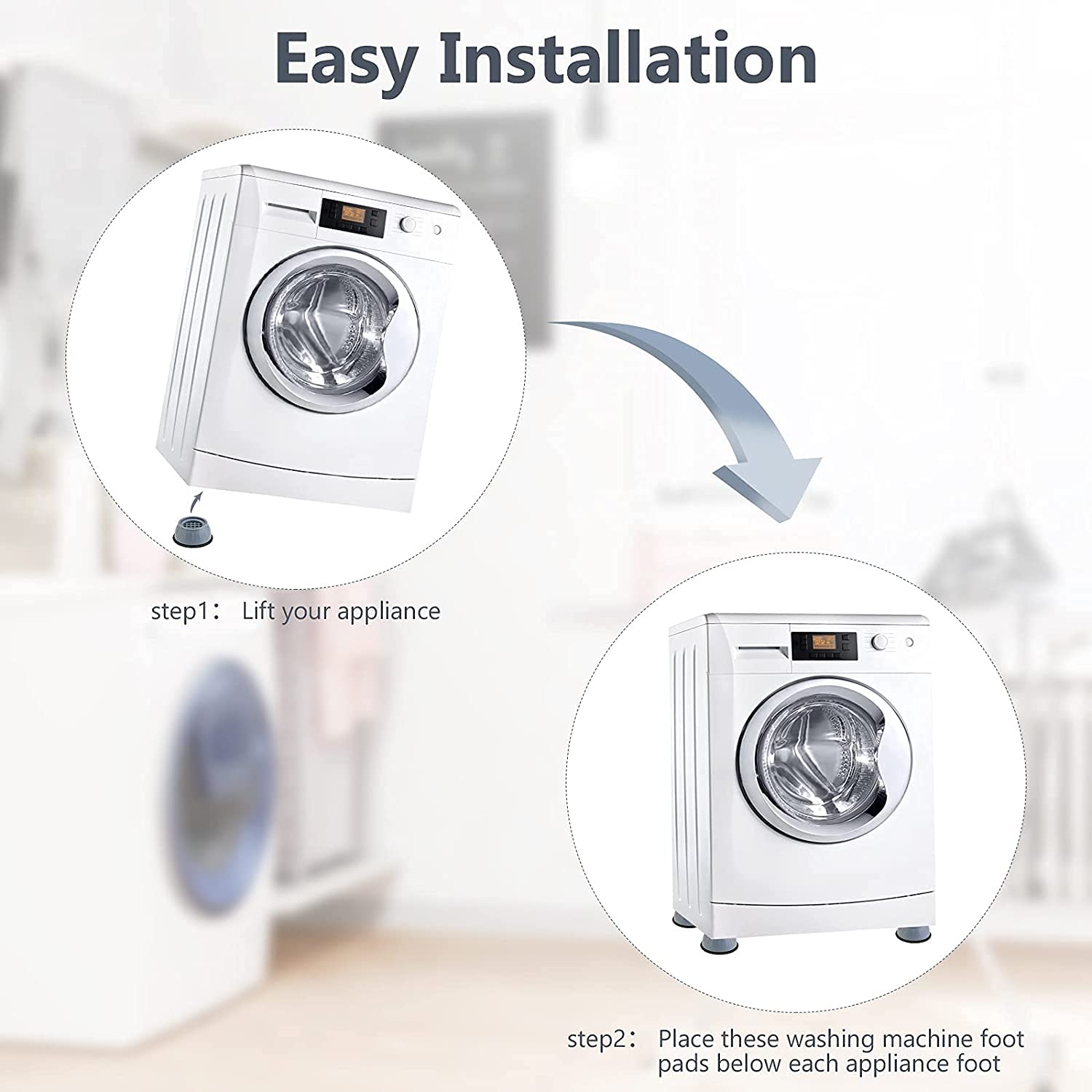 HIGH QUALITY MATERIALS-- Made of high quality rubber and plastic, durable under wet or harsh environments FUNCTION: This washing machine feet pads use When the dryer or washing machine is completely shaken, or the furniture is moved, they will make unpleasant noises. These pads have the effective functions of Shock absorption, noise reduction, anti-vibration, anti-walk, no scratching to your floor and convenient cleaning. HEIGHTEN & LEVELING: Raise furniture and home appliances by a few centimeters is for effectively preventing moisture and better ventilation. EASY TO INSTALL: Simply put the pads under your washer machine, furniture or home appliances to install. The reason why these mats are so good is inseparable from their ease of installation. APPLICABLE TO: Suitable for washer, dryer, fridge or other machines or furniture need to raise the height and keep steady.